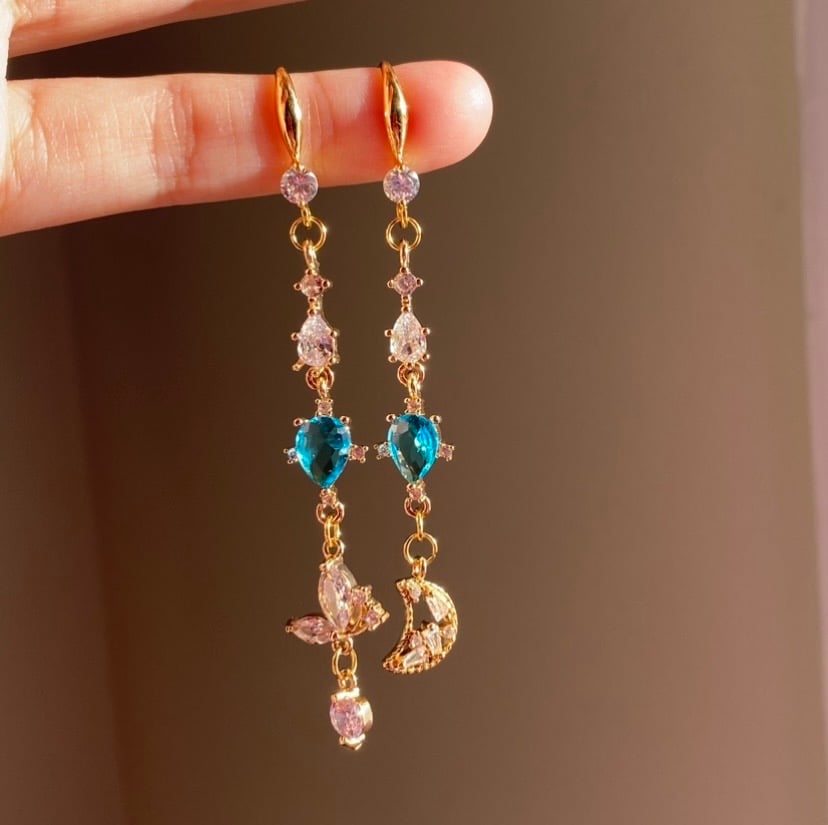 Asymmetrical earrings, one Butterfly and one Moon Pendant earring ❤️